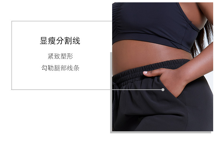 women plus size side with pocket elastic band waist with rope elastc leg openign Black running pants